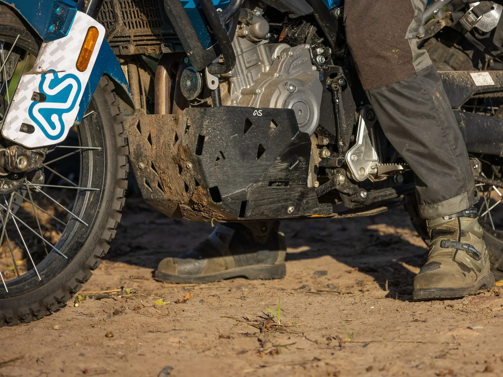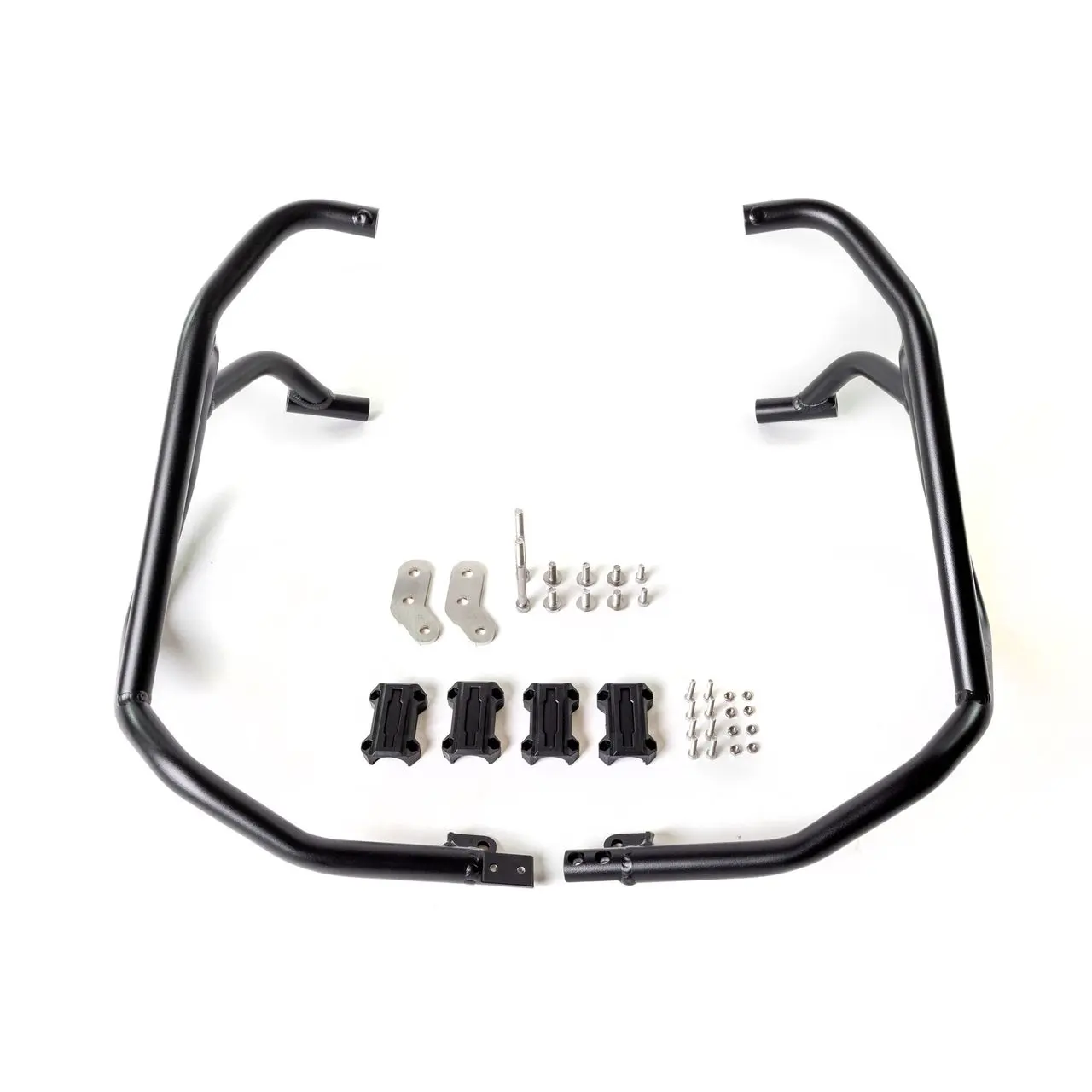 Our CF Moto 450MT crash bars are designed to protect your fairings and radiator in the event of a spill. Constructed from 23mm diameter 3mm thick 6000 series heat treated aluminium they are designed to give your bike a sacrificial surface in the event of a high speed slide. Use with Adventure Spec CF Moto 450MT bash / skid plate for complete protection. Weight = 2.52kg / 5.5lb.