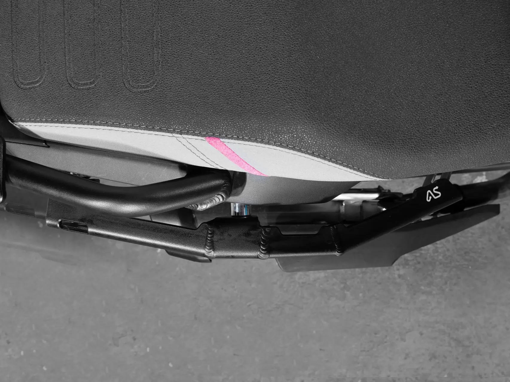 Mounts into OEM fixing points on the rear 450MT subframe. This requires some drilling of the plastics. Instructions included and OEM plastics have drill holes marked ready for this modification.