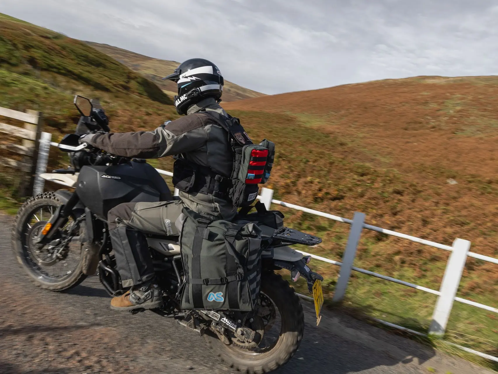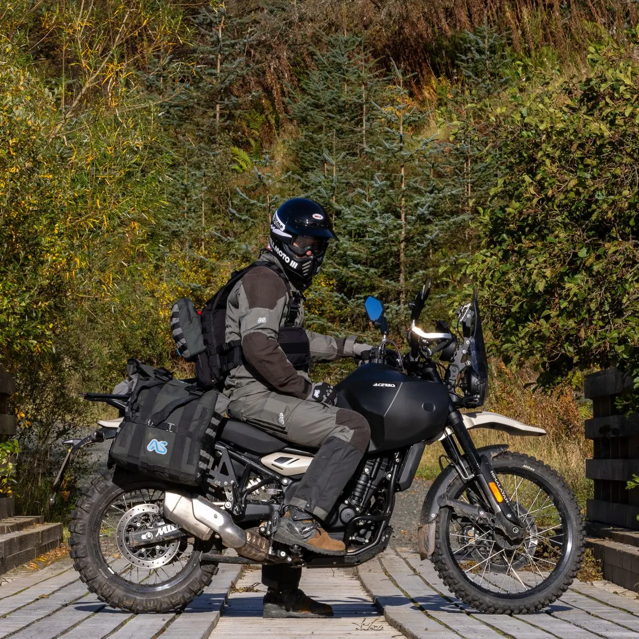 Jim wears the Gravel Jacket & Pant adventure touring suit.