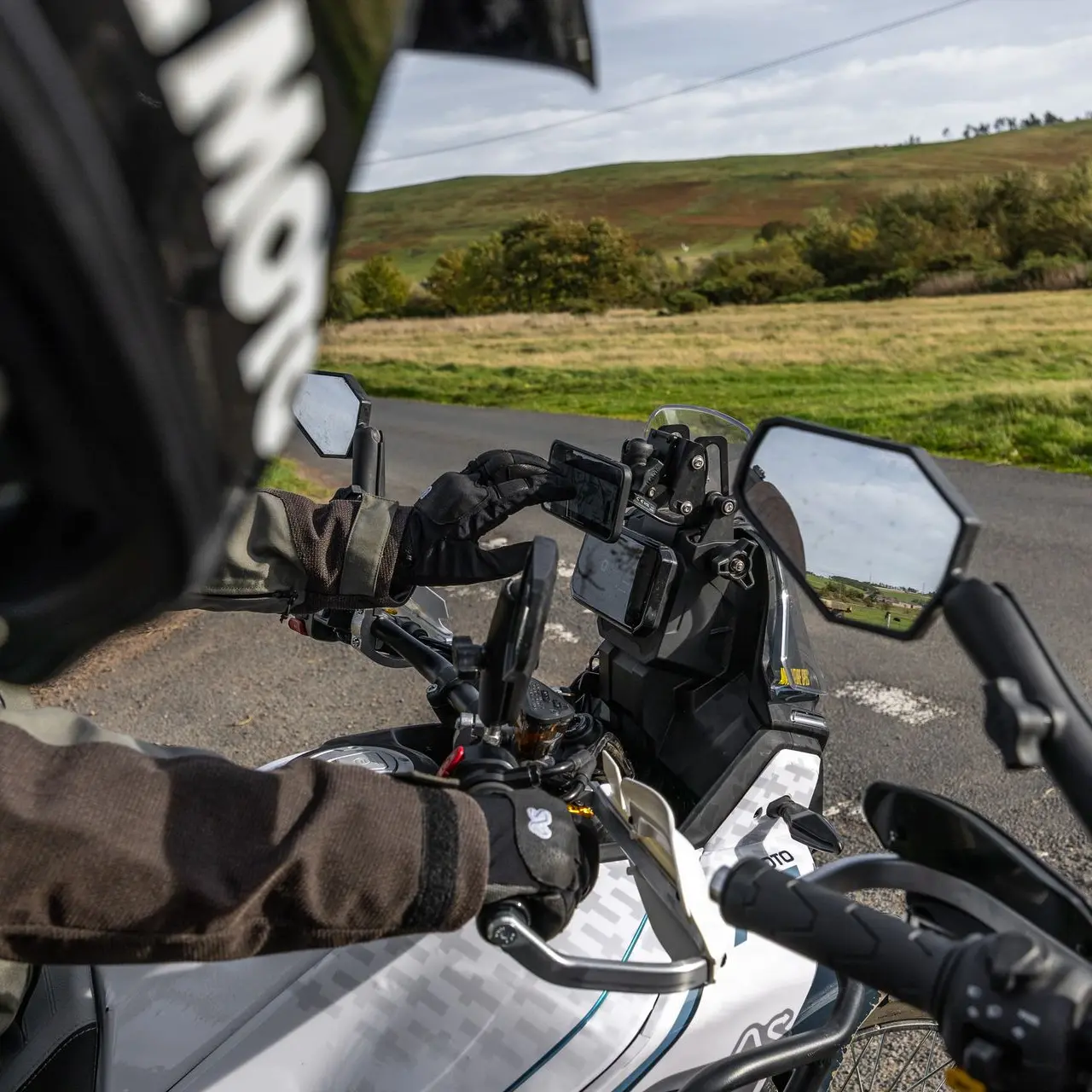 Places your GPS / tablet / phone / nav device in easy line of sight.