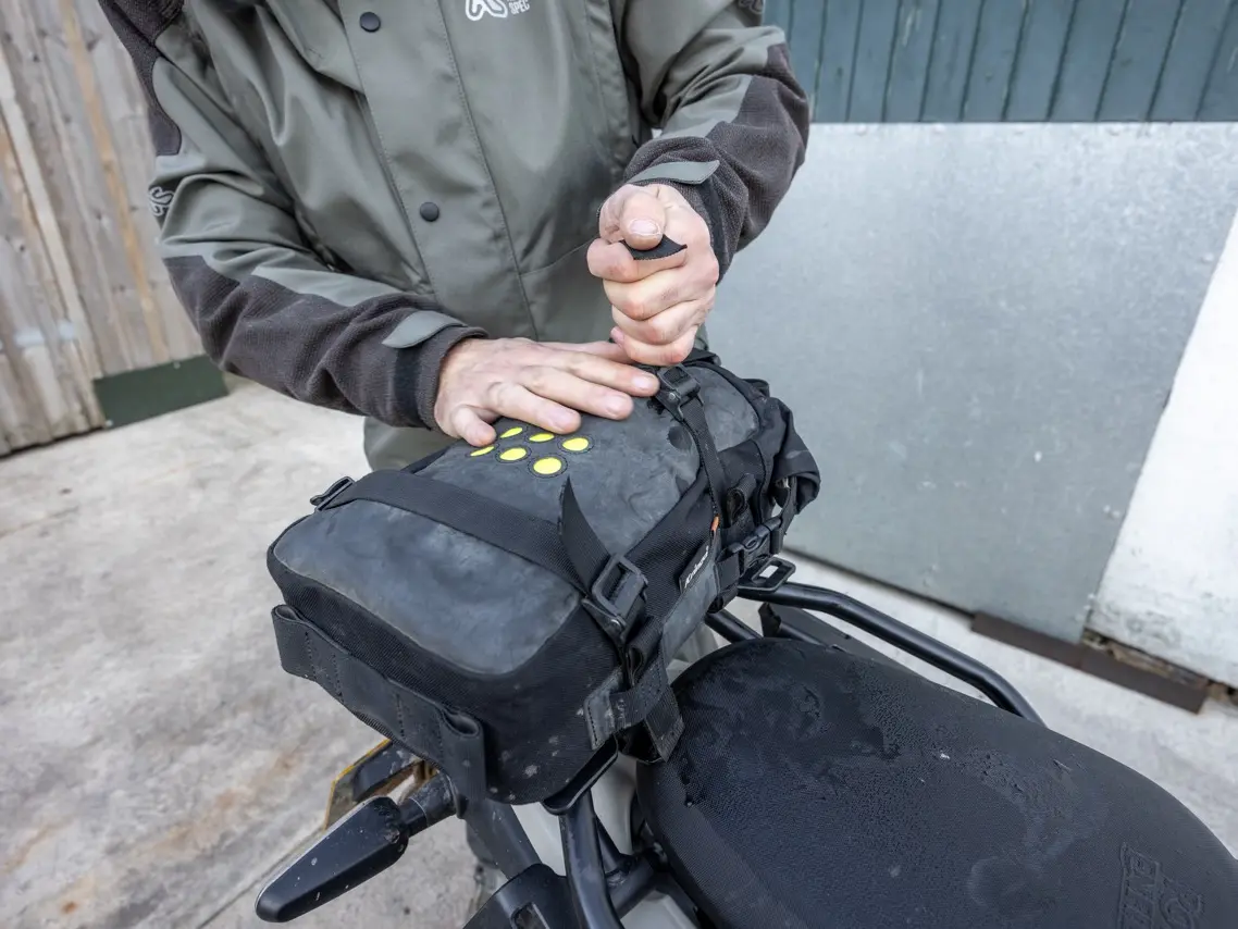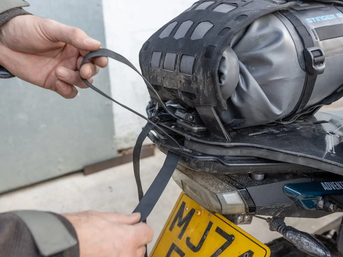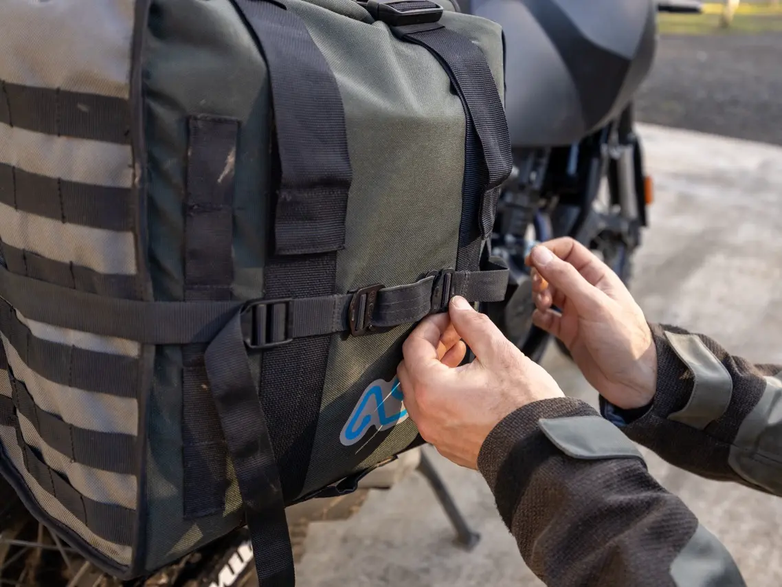 Tuck away loose straps and give everything a good tug and wiggle to make sure all is secure. Check there is sufficient gap between panniers and exhaust (consider adding our Exhaust Heat Shield if necessary).