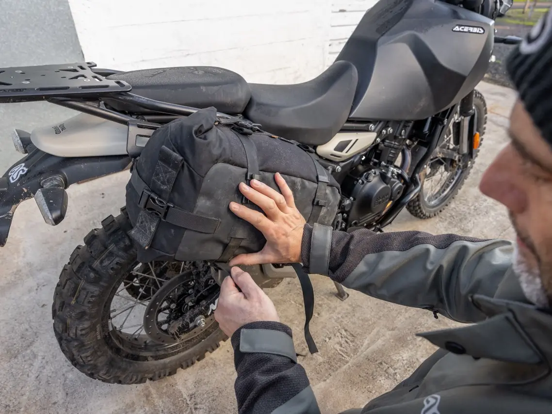 This guide shows the Kriega OS-12 Panniers being installed on the Royal Enfield Himalayan with Adventure Spec luggage racks. Other luggage and bike / rack combos are possible and will follow the principle of this guide.