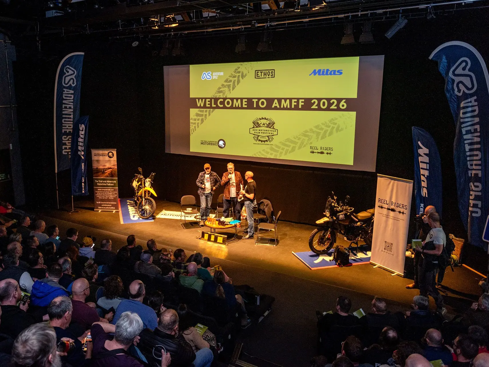 And so one year later, this February just gone, as the lights dimmed in Kendal Brewery Arts Centre and the screen lit up with the first motorcycle adventure of the evening, I was glowing with admiration at what Clive (TAM Podcast) and his festival partner Simon (Reel Riders Podcast) Josey had managed to pull off.