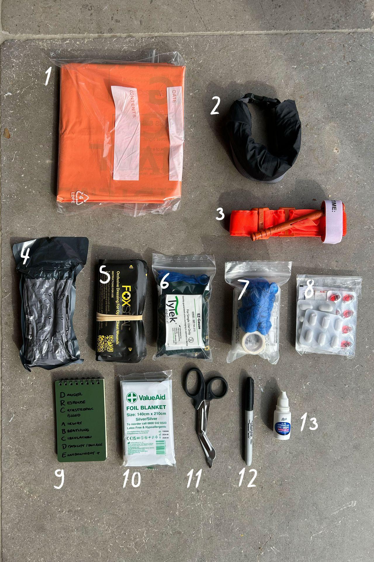 - Dry bag (to put first aid kit into).