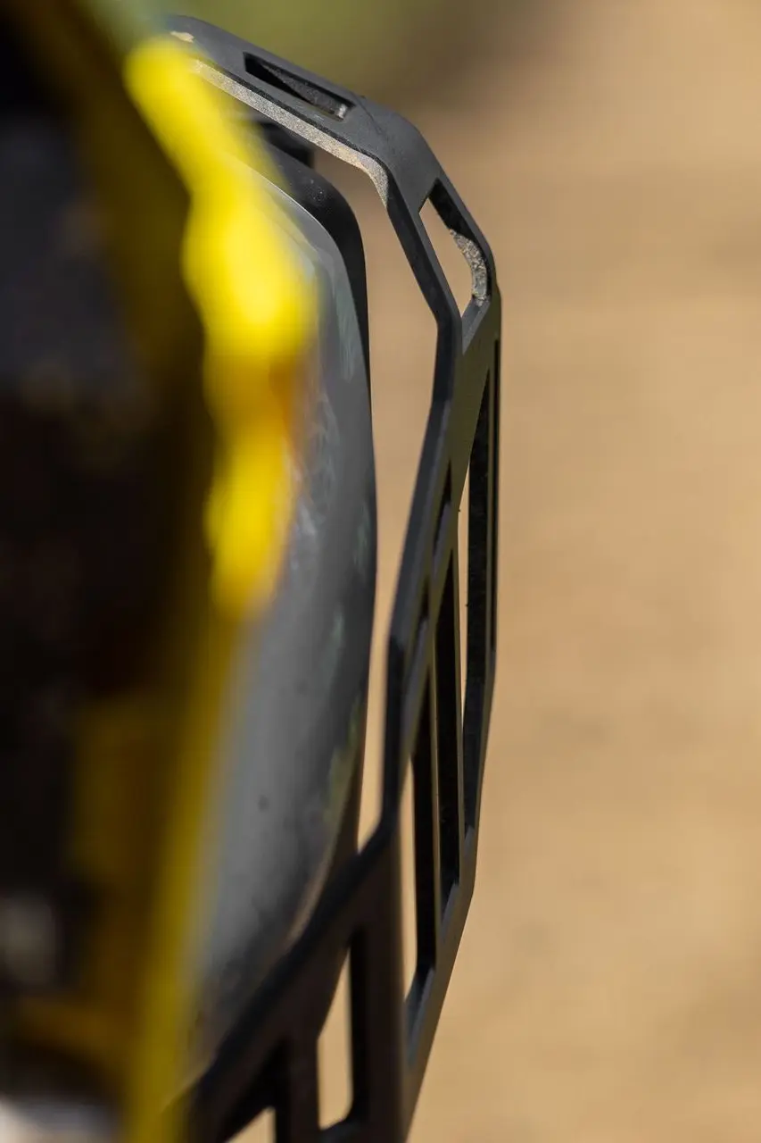 Chamfered edges help prevent wear on pannier straps and webbing.