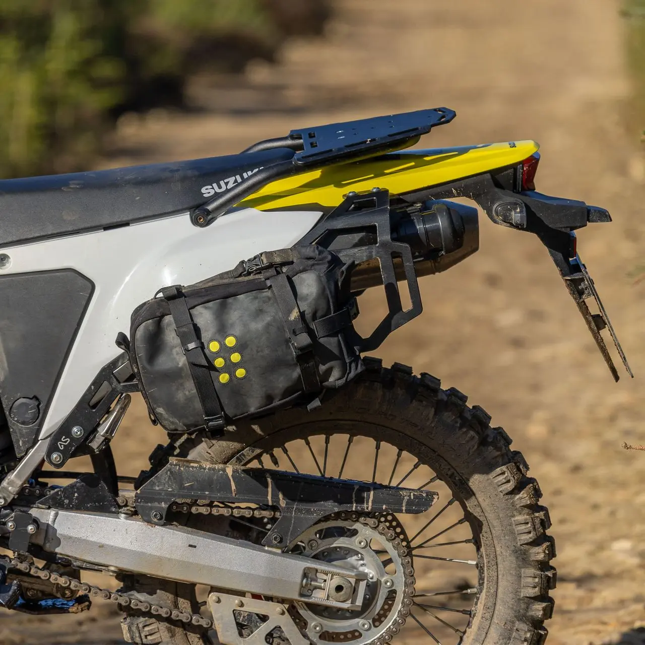 Side Luggage Racks for your Suzuki DR-Z4S motorcycle. These lightweight and rugged aluminium supports will give you the base you need for mounting soft panniers. Proven to work well with a wide range of luggage systems including Mosko Moto Reckless, Kriega OS and others.