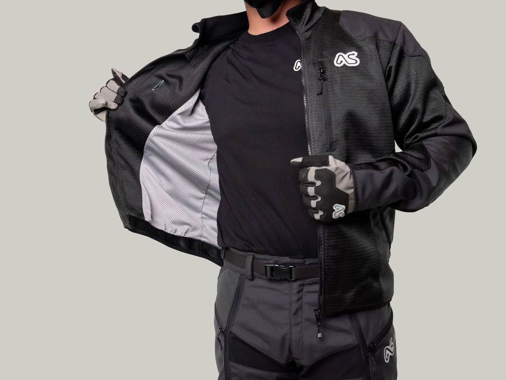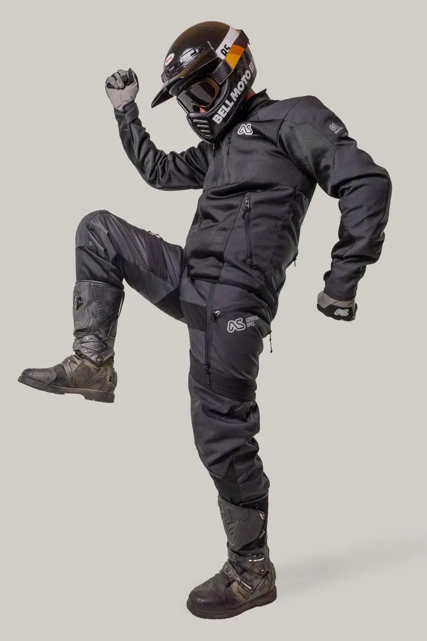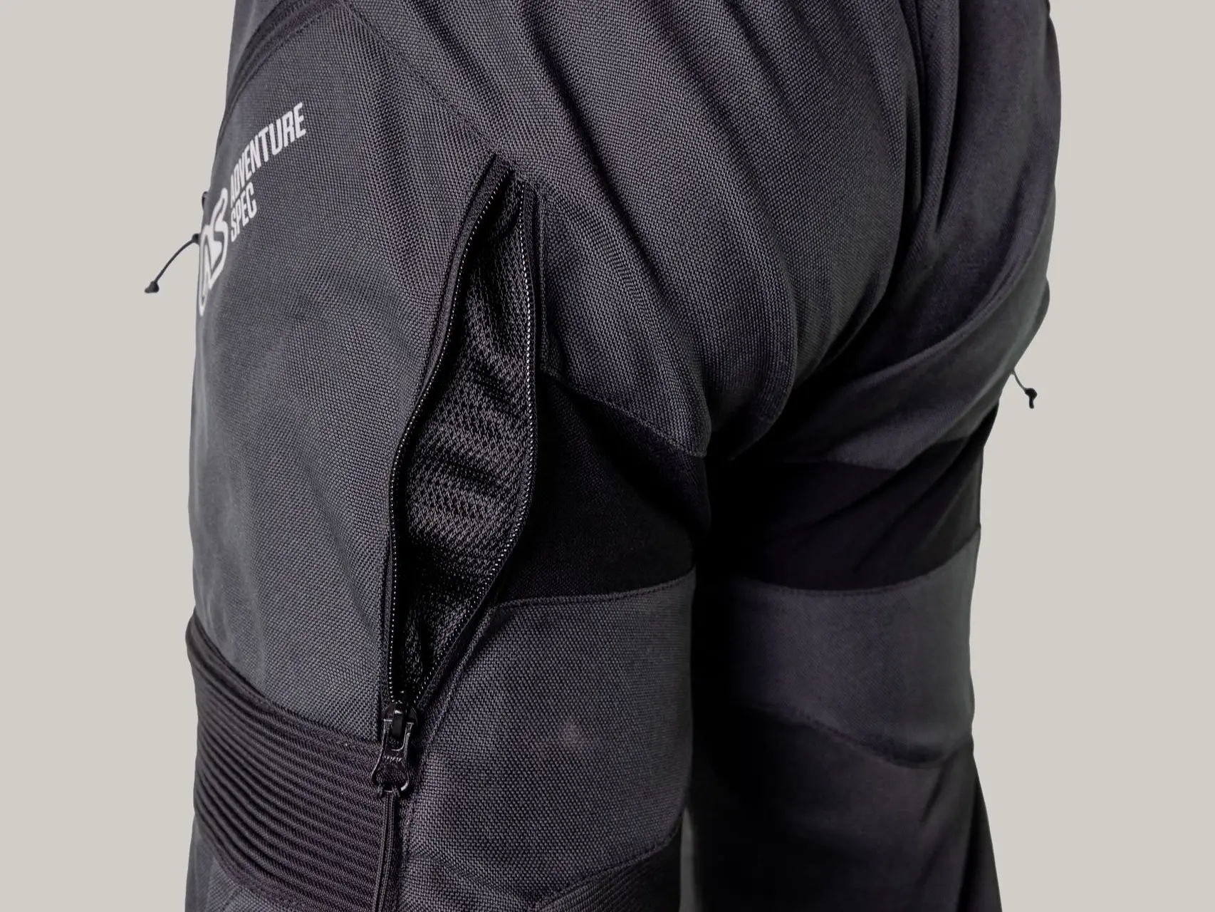 These layers create a high performing fabric, uniquely designed and manufactured by Adventure Spec for lightweight adventure riding.