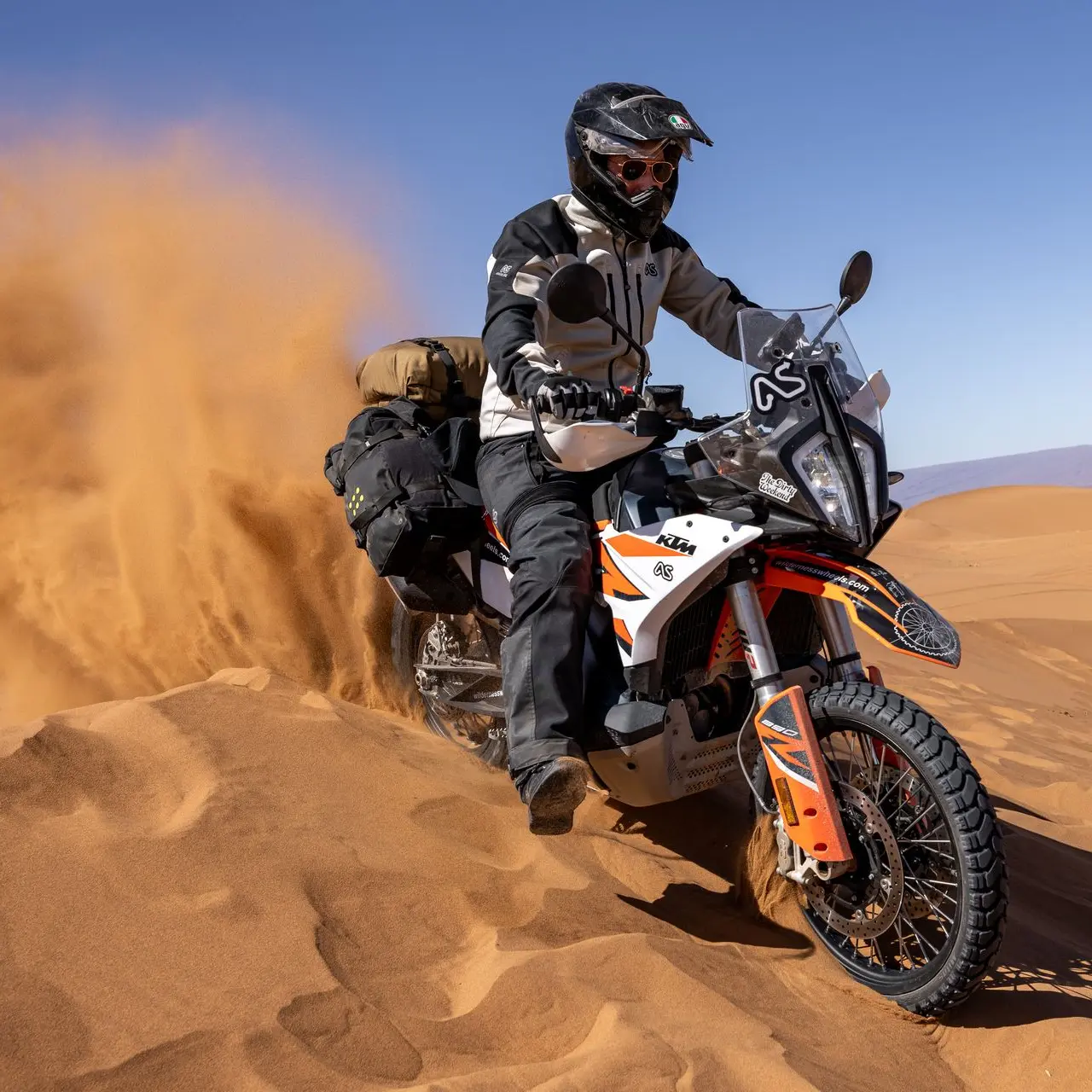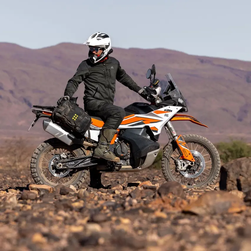 The original Mongolia and Atacama Jackets were designed to help Lyndon Poskitt complete the Dakar Rally (twice). Lyndon tackled tough off road stages, but also needed to ride thousands of road miles on liaison sections. For 2025 we've updated the Mongolia Jacket and Pant 2,0, taking all the tech we developed for tough rallying and adapting it to make it more suitable for CE AA adventure motorcycle touring.