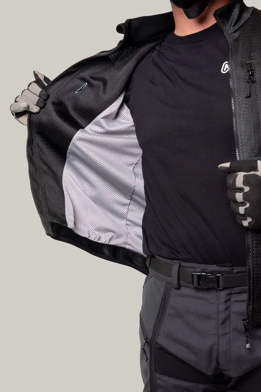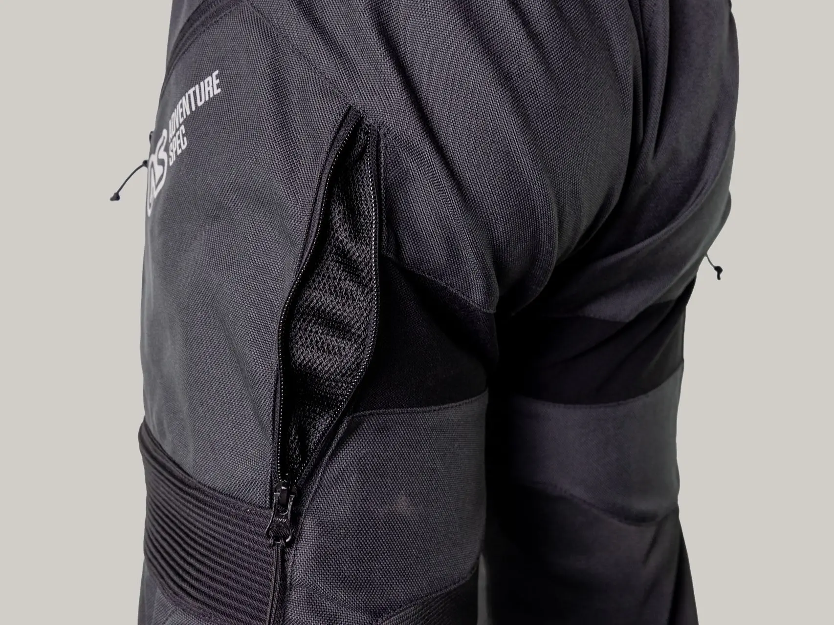These layers create a high performing fabric, uniquely designed and manufactured by Adventure Spec for lightweight adventure riding.
