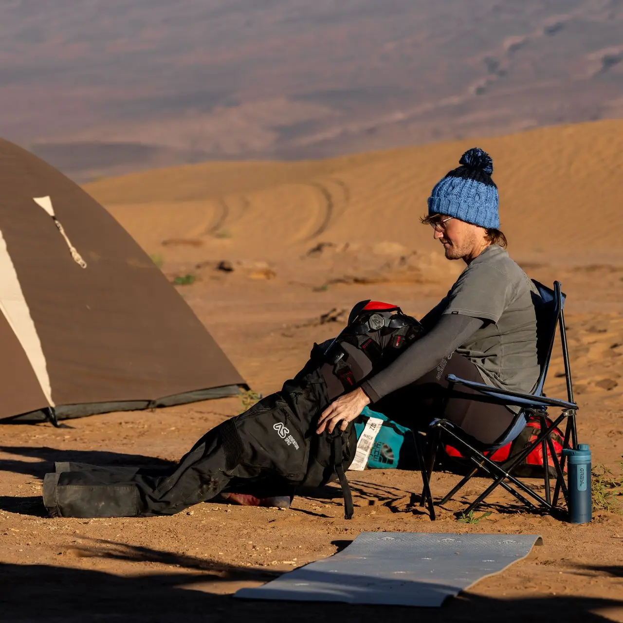 Sam wears the Mongolia Jacket 2.0 Storm with the Mongolia OTB Pant 2.0 Black.