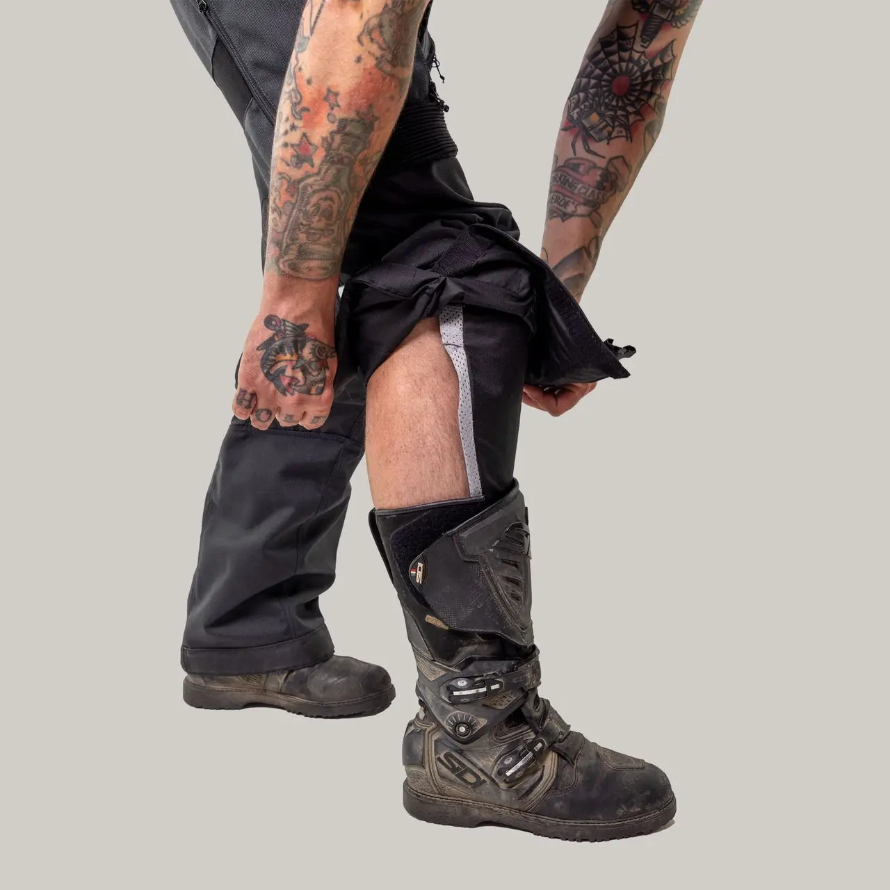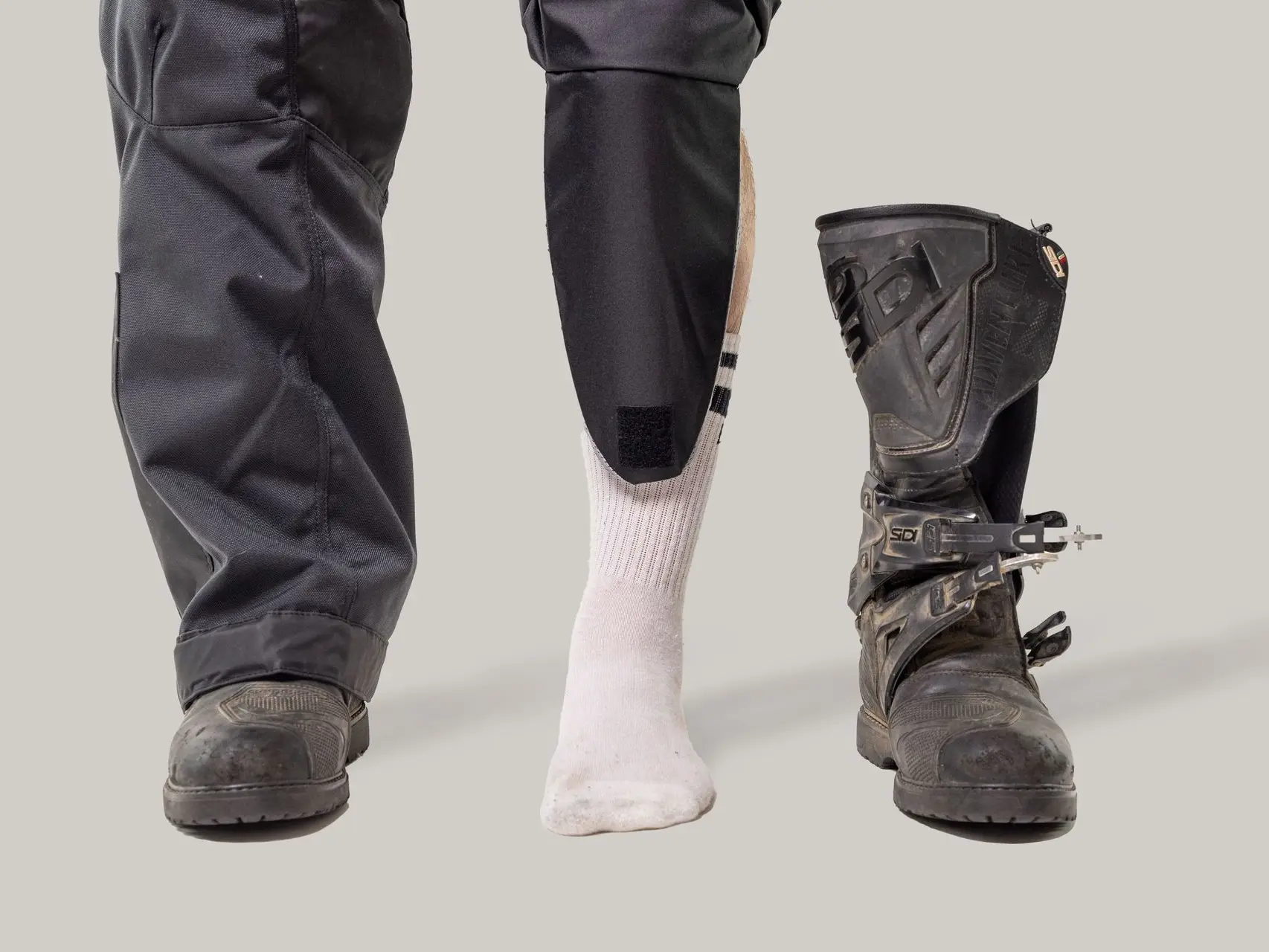 The over-the-boot cut is particularly suited to adventure touring, and works well to keep water, mud and dust out of your boots.